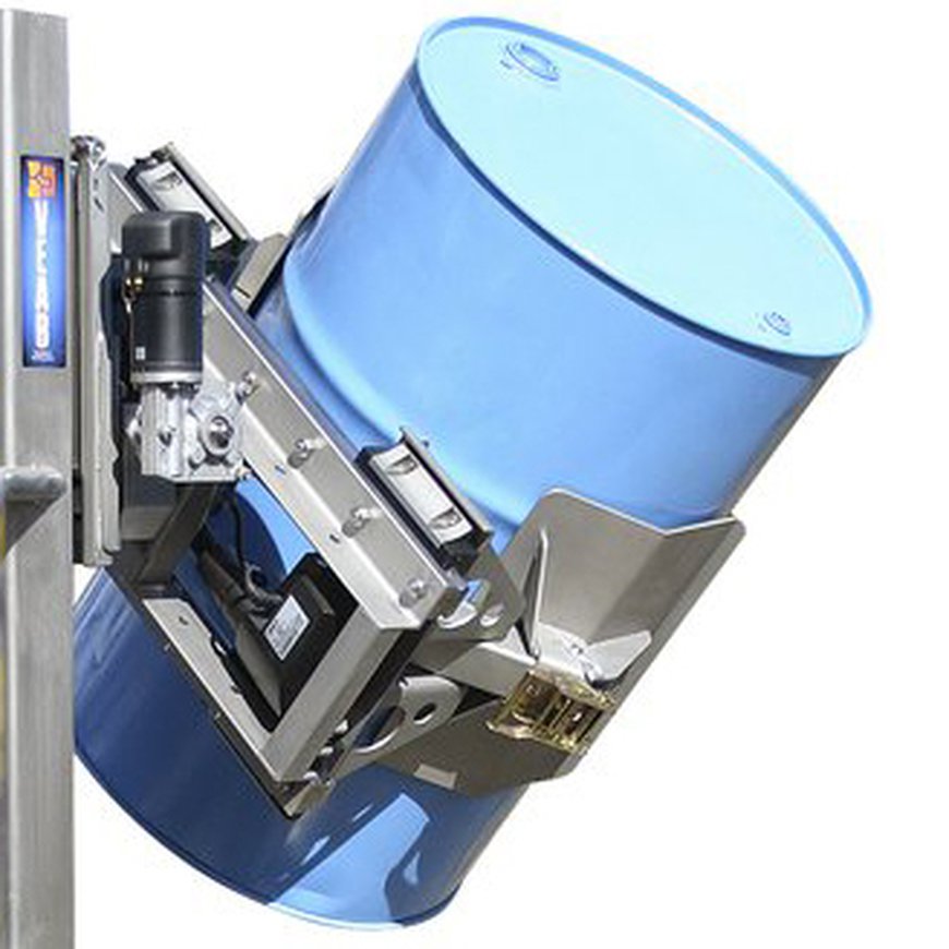 Single-column trolley with electric lifting, complete with ELECTRIC drum tilter